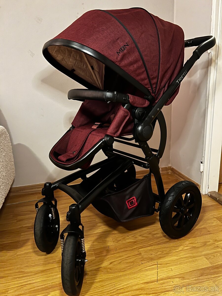 Moon Tregg je kombinovaný kočík na špecificky tvarovanej modernej konštrukcii s košíkom prístupným spredu, typickej aj pre novší model Moon Cool. Odpružené predné penové kolieska i zadné väčšie penou plnené pneumatiky sú vhodné primárne do mesta, zvládnu však aj mierne zhoršené podmienky.