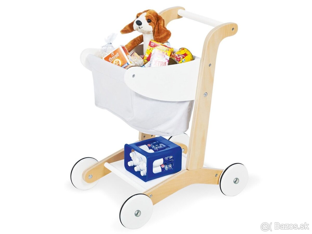 V nákupnom vozíku je dostatok miesta pre potraviny a tiež plyšové zvieratko, v spodnej časti sa môžu voziť nápoje