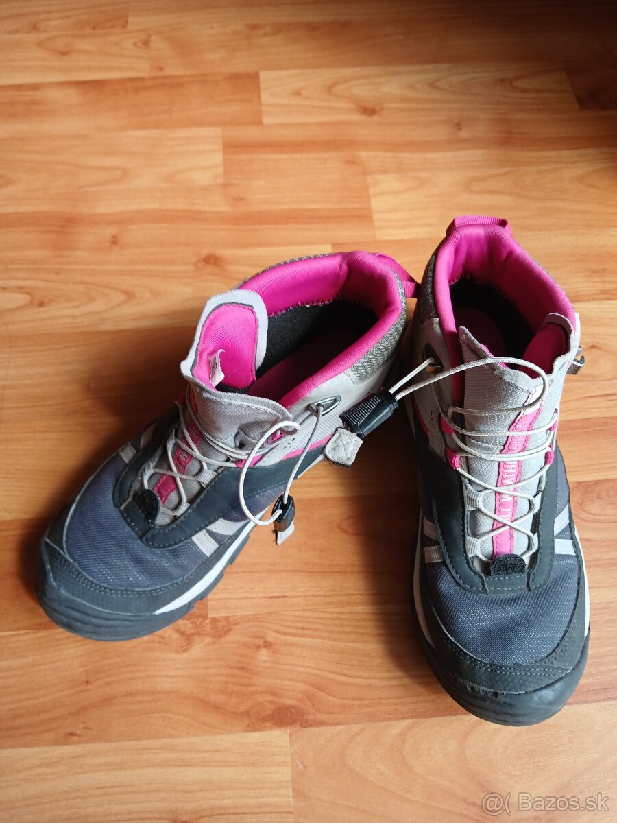 Predám detské dievčenské turistické topánky č.36 (z Decathlonu, ale veľkosť som napísala radšej č.35, lebo celkom nesedí číslovanie). Sú málo nosené, takmer ako nové, pevné, pohodlné, dobre sa zapínajú, majú peknú farebnú kombináciu, s pevnou podrážkou, ale ľahké sú. Posielam poštou po zaplatení alebo osobný odber v Pezinku.
