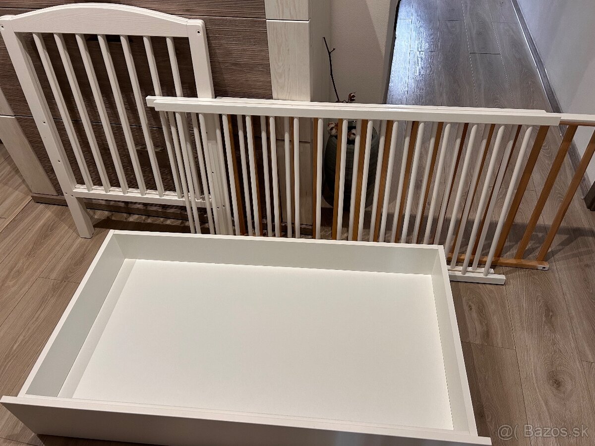 Predám detskú postieľku, vrátane antialergického matraca. K postieľke je prirobený veľký šuflík, ktorý slúži ako úložný priestor. Postieľka je v rozloženom stave a má pár škrabancov(viď. foto 2),ktoré sa dajú zatrieť.