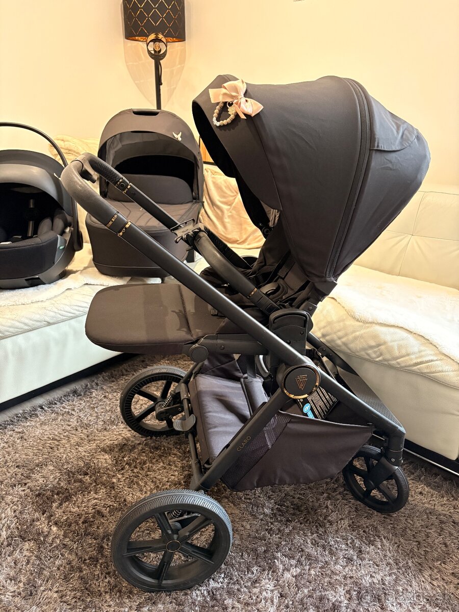 Predám kočík Venicci Claro Noir + autosedačku Cybex Cloud G+ Moon Black, bežné známky používania, stav 9/10