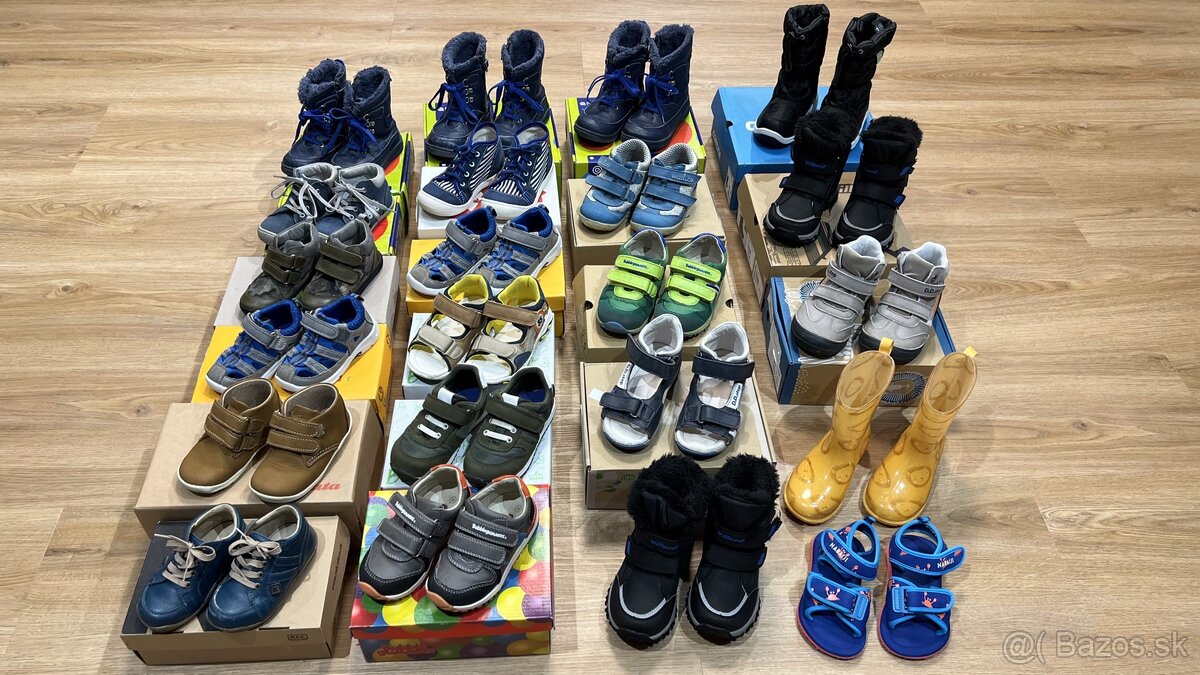 Predám detskú chlapčenskú obuv rôznych značiek a veľkostí (od 19 do 27). Niektoré boli obuté viackrát, iné zase 2x. Všetko popísané na foto. V prípade záujmu viem poslať aj viac foto.