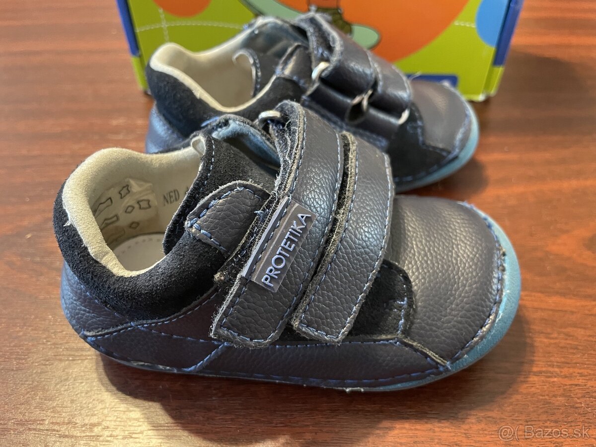 Predám veľmi málo nosené kožené topánočky modrej farby. Veľkosť 20, dĺžka vnútornej vložky je 13,5 cm. Nášmu synovi rýchlo vyrástla nožička, nestihli sme ich vynosiť. Nosené boli ledva dva mesiace a to skôr výnimočne. Kupované tohto roku v januári v Prešove, PC 27,90€. K topánkam prikladám aj doklad o kúpe. Topánky sú vo veľmi dobrom stave. Osobný odber alebo pošlem aj poštou.