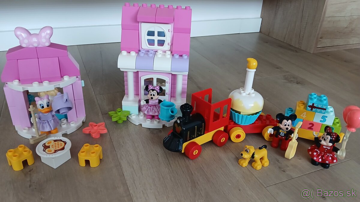 Lego Duplo - Minnie a jej domcek s kaviarnou a lego Duplo - Narodeninovy vlacik Mickeyho a Minnie. Cena spolu za vsetko. Osobny odber Mojš, pripadne Žilina - Postova.