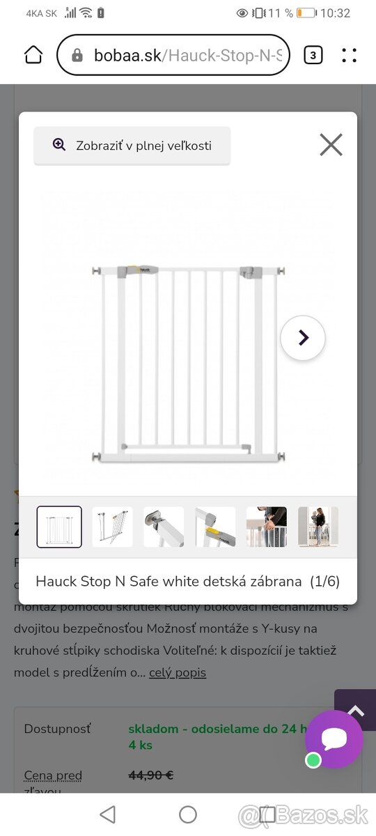 Predám detskú zábranu značky Hauck pre šírku dverí 75-80 cm.
