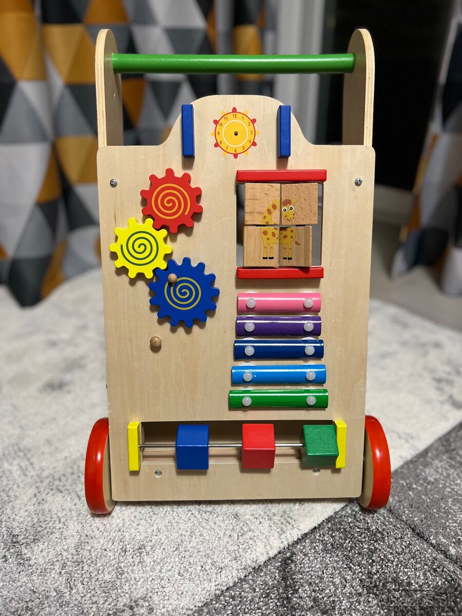 Predám kvalitné drevené chodítko pre deti s množstvom hracích prvkov. Vhodné pre deti, ktoré sa učia chodiť a zároveň sa rady hrajú.