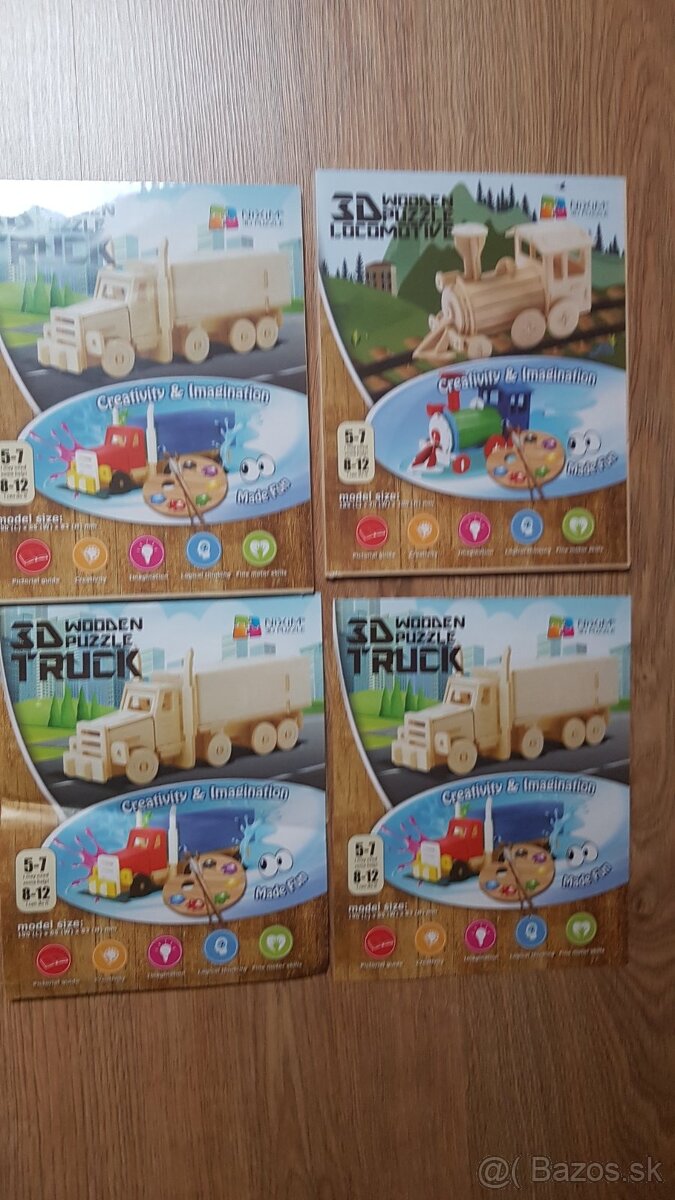 4x drevene stavebnice dopravne prostriedky