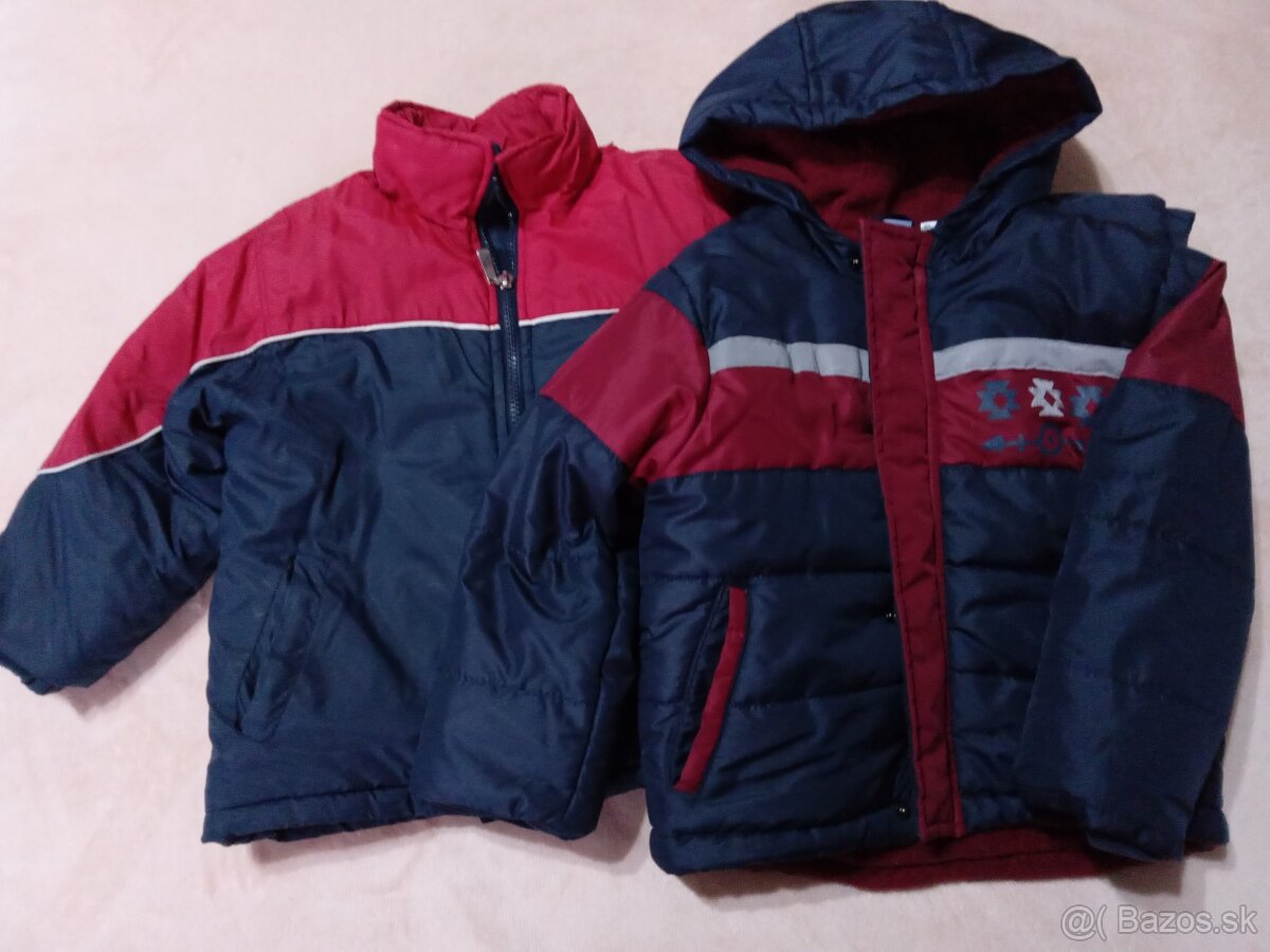 Predám zimne bundy jedna je bez kapucne a druha s kapucňou veľkosť 104 cena 8eur