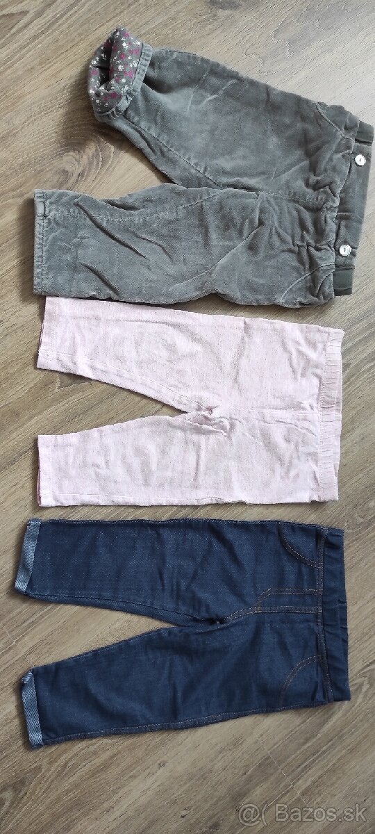 Predám nohavice a legíny pre dievčatko veľkosť 74,80. Cena spolu 6 eur.