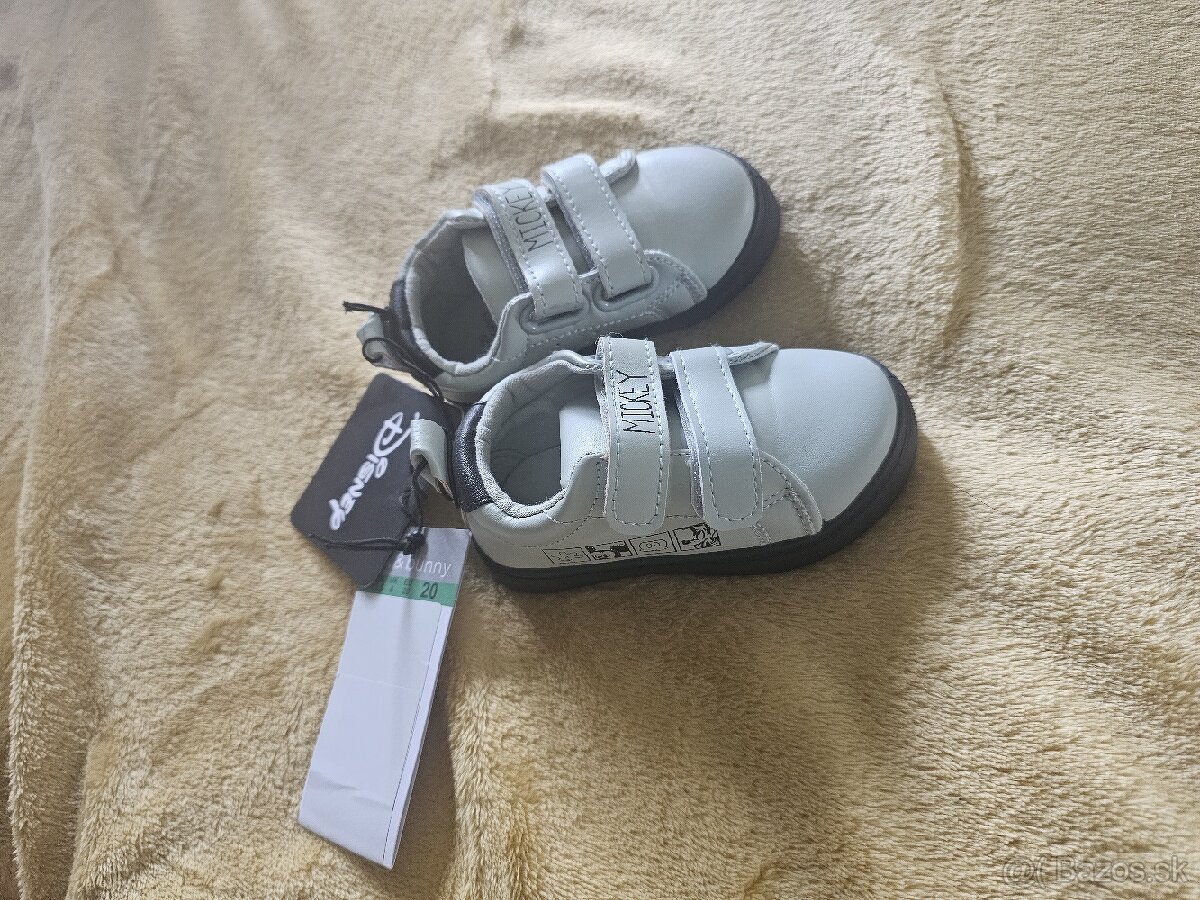 Mickey mouse disney tenisky nove,velkost 20. mali sme ich odlozene u svokrovcov a zabudla som na ne,uz nam nozka odrastla, uplne nove s visackami.