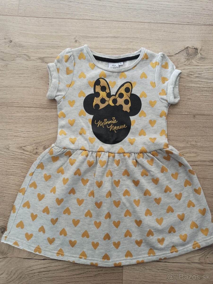Šaty Minnie Mouse vo veľkosti 104/110 - pre 4 rovné dievčatko... Dajú sa ponosit kľudne aj do 110 sú vo veľmi peknom stave, pár malých žmoliek sa nájde, ale inak super, dovezené z Anglicka. Sú z takého zatepleného úpletu, takže kľudne vhodné aj do chladného prostredia.