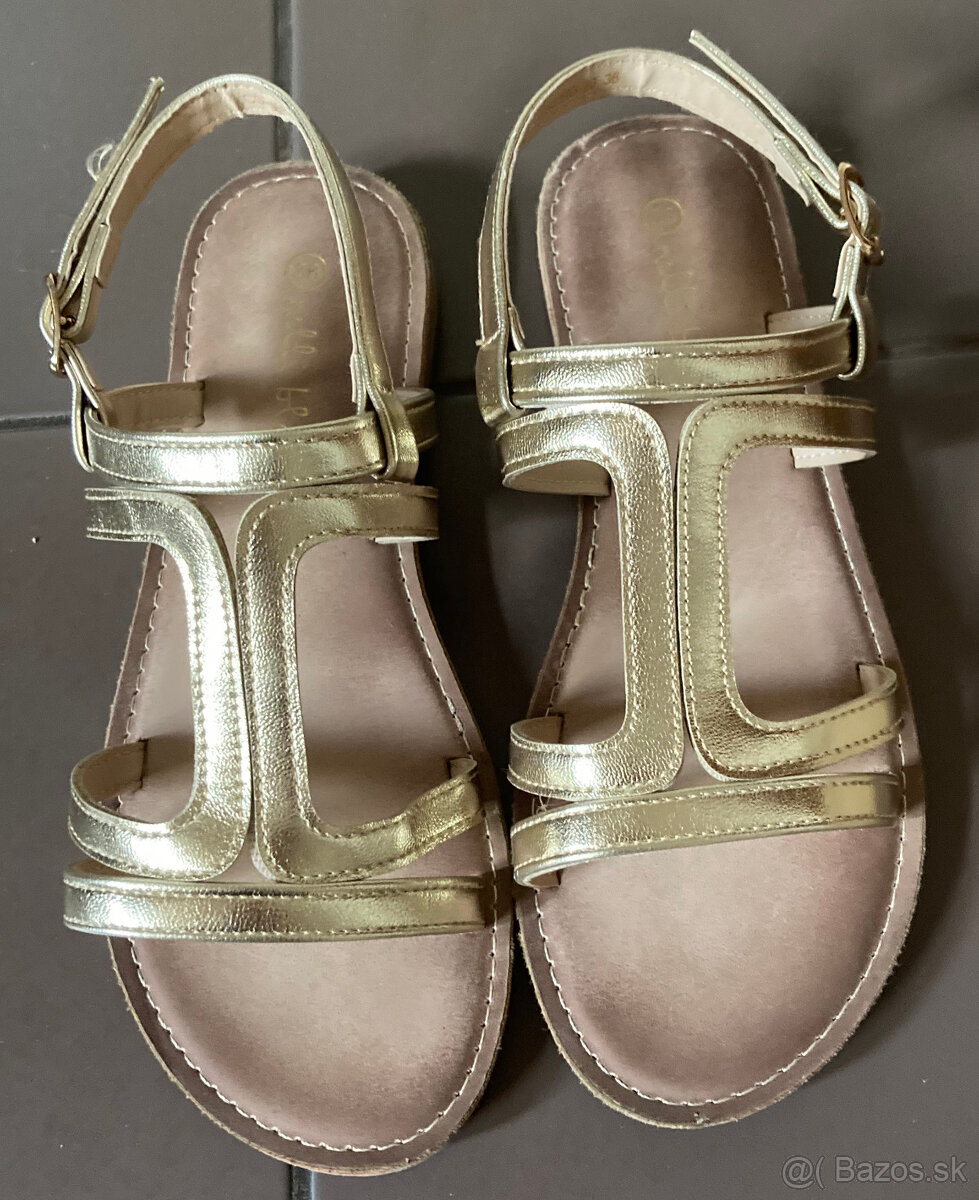 Predám dievčenské sandále v zlatej farbe. Obuté boli párkrát, sú vo výbornom stave.