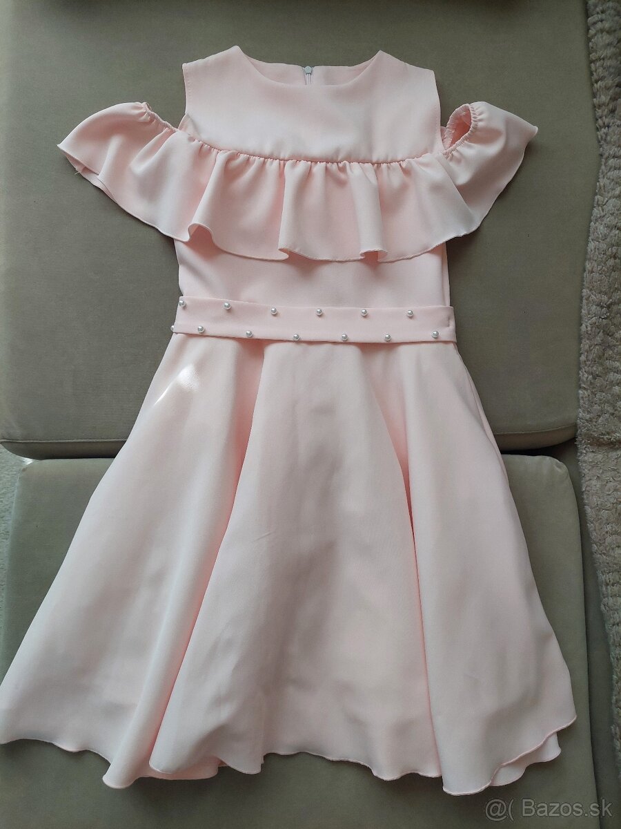 Krásne šaty na peknú príležitosť, vhodnú na párty, oslavu, divadla alebo špeciálnu školskú udalosť. Pod šatami s krepovou podšívkou. Použité 2x, ako nové, top stav.Velkosť 152. Pôvodná cena 49eur.