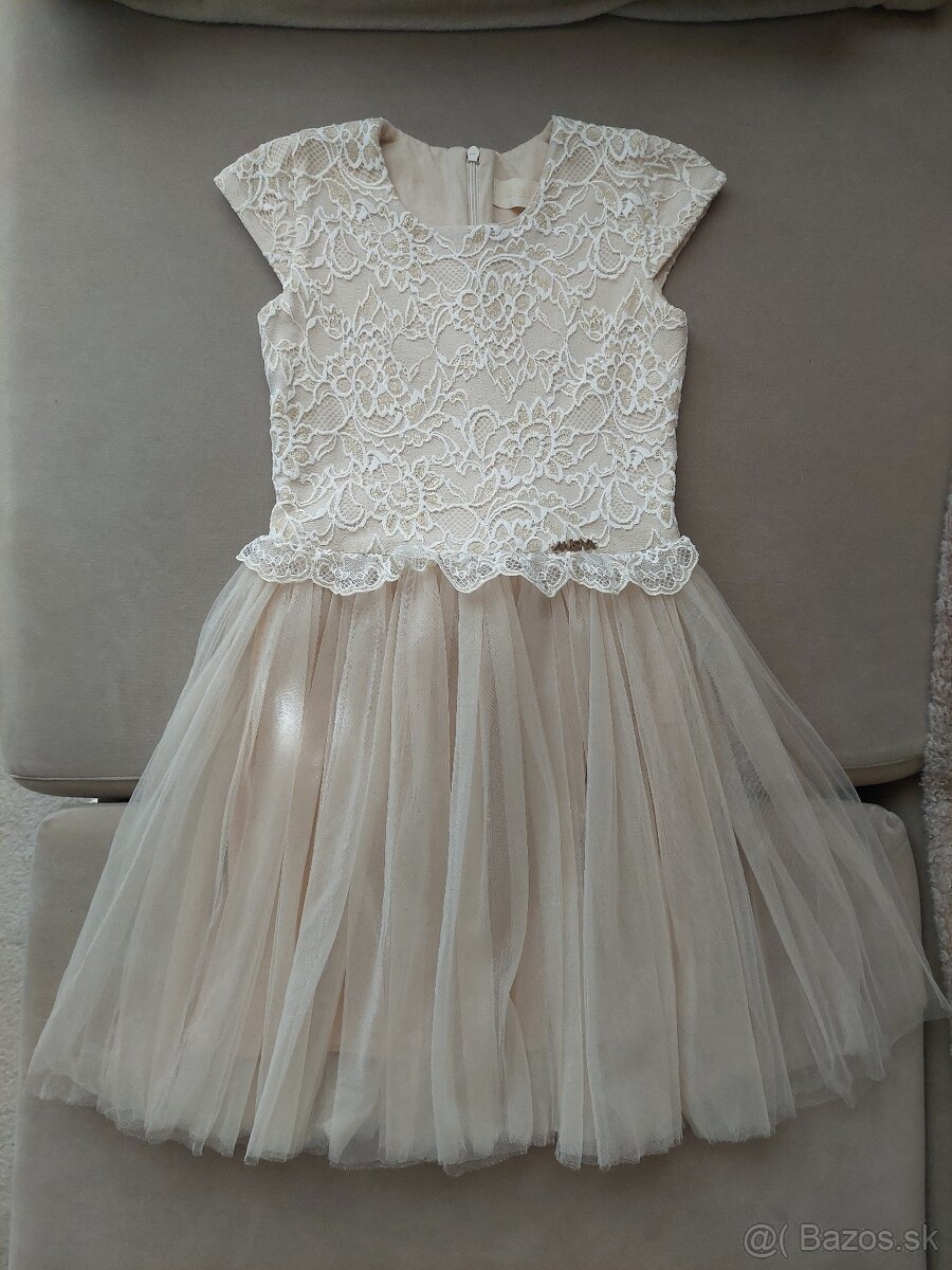 Predám krásne zlaté dievčenské šaty kupované v Bulharsku v butiku, velkosť 134, vzadu na zips a s mašlou. Oblečené 2x, ako nové. Pôvodná cena 39eur. Aktuálna cena 20 eur.