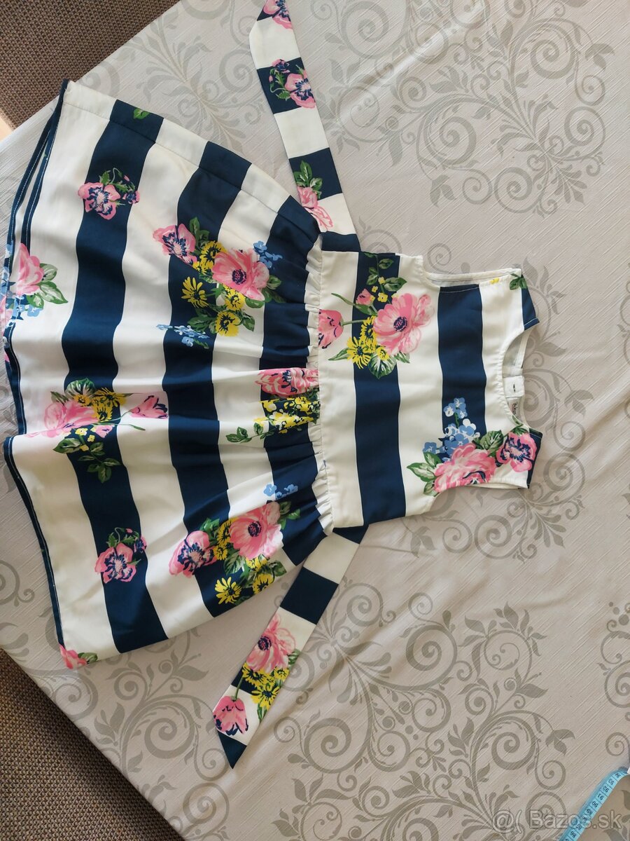Predám krásne letné šaty.Oblečené jedenkrát,takže v TOP stave.Nemajú uvedenú veľkosť.Dcérka ich mala na sebe,keď mala vyše 1 rok.Tak taká 92.V prípade záujmu sa prosím orientujte podľa rozmerov na foto.Možný osobný odber v NR.