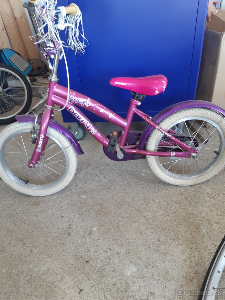 Predám bicykel po dcérke, kolesá 16, v dobrom stave, akurát do sedadielka zahryzol náš psík. Ale poslúži ešte.