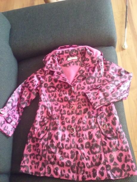 pekný stav, šuštiakový, podšitý flísom, chýba opasok, jediná chyba sú vyťahané gumičky , ktorými je o gombičky uchytená kapuca- stačí vymeniť,velkost 140