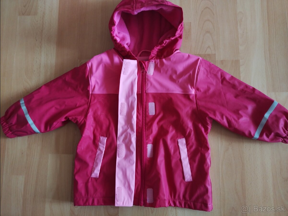 1.Nepremokava červená bunda nosený stav, malý oderok vid. foto, veľkosť 86/92 12-24mes,