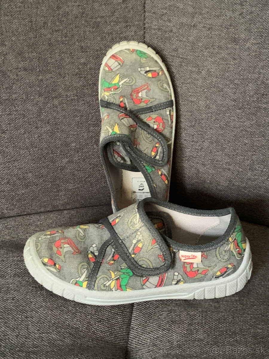 Predám málo nosené plátené topánky (vhodné aj ako prezuvky) značky Superfit, veľkosť 28, VD: 18cm. Cena je uvedená bez poštovného. Možný aj osobný odber. Reagujem iba na mail.