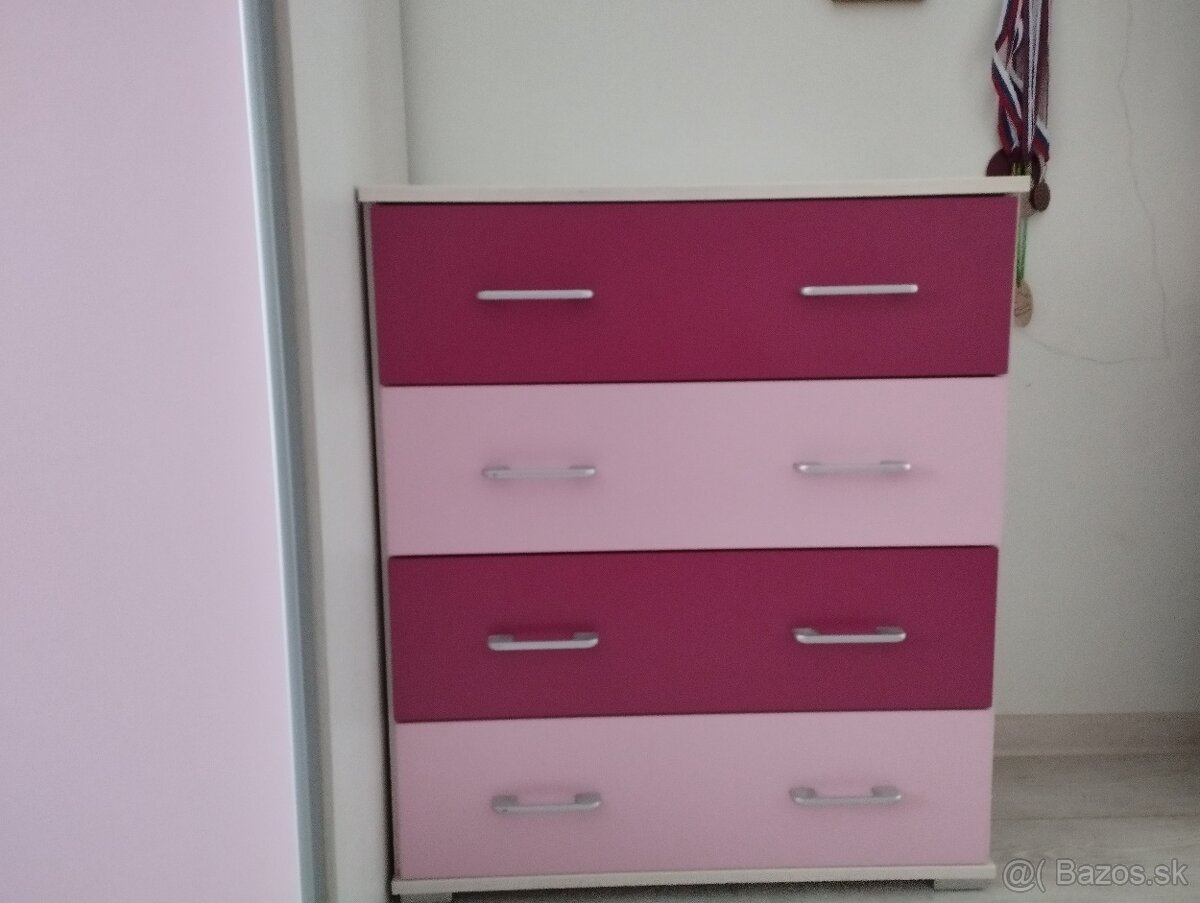 Predám nábytok do dievčenskej detskej izby vo výbornom stave. Boky a vrchná doska sú vo farbe woodline creme. Len osobný odber.