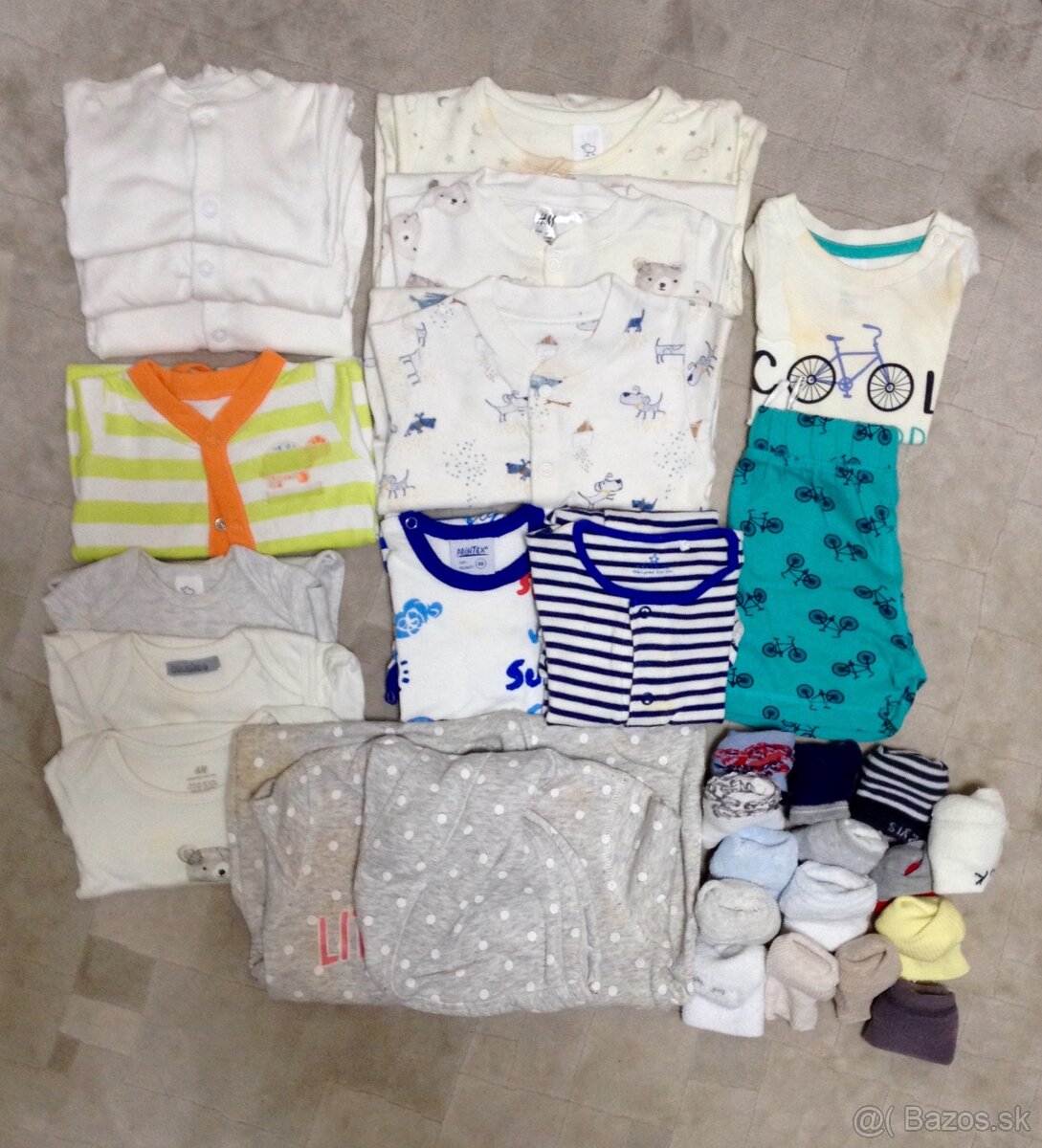Predám mix dupačiek, 5 krátke a 8 dlhé, tričko s kraťasmi a ponožky ako na foto. Veci majú fľaky alebo žmolky, všetko nosené. Veľkosti od 56 po 86. Cena: 3,-