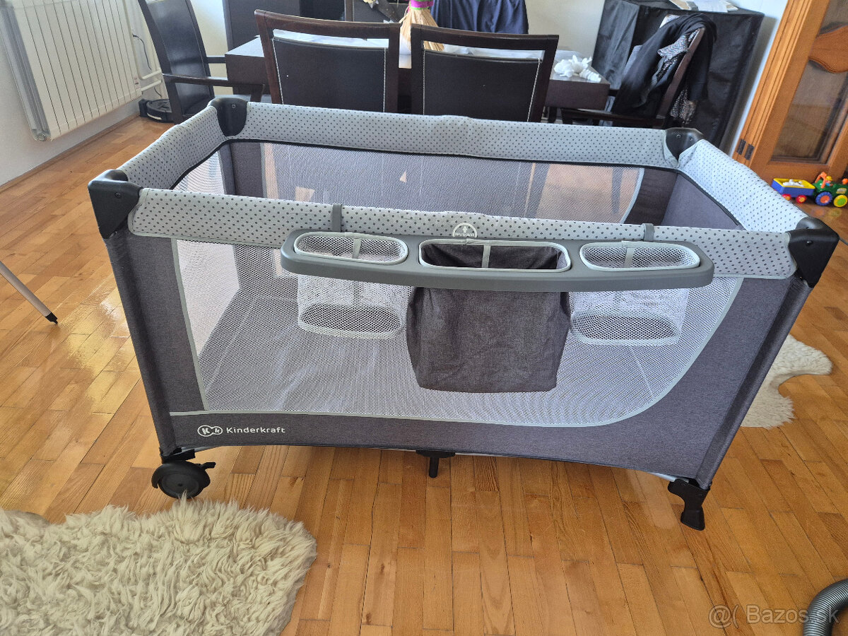 Cestovná detská postielka - [4.1. 2026]Predám málo používanú detskú postieľku. Je polohovateľná v 2 polohách, má prebaľovací pult, hračky a cestovný matrac.