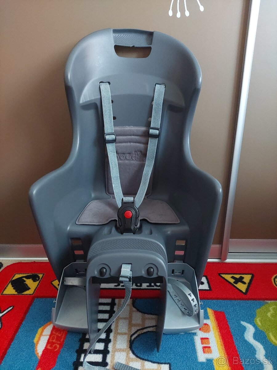 Predám zachovalú sedačku na bicykel. Bez velkých poškodení, funkčné poškodenia žiadne, iba malé škrabance (od steny ako bol zaparkovaný v pivnici), odfotené. Uchytenie:na zadný nosic bicykla-šrobovanie pomocou jedného velkeho šrobu zospodu + popruh. Nosnosť do 22 kg. Osobny odber mozny Galanta. Pri vaznom zaujme mozna dohoda- Nitra, na trase NR-GA, Nove Zamky.