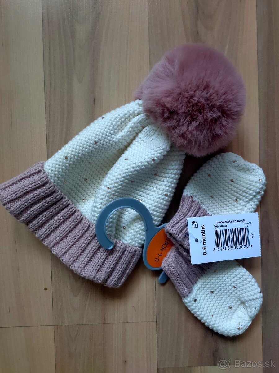1.Úplné nová supravička čiapka a rukavice pre malé dievčatko,veĺkosť do 6 mesiacov,cena 5€