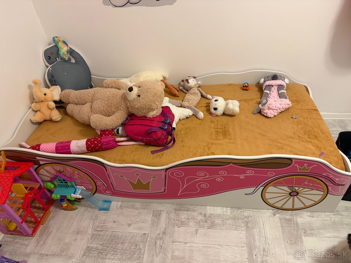 Vyvýšená detská posteľ so šmykľavkou 90x200 - [27.1. 2026]Predám cca 4 roky používanú posteľ so šmykľavkou. Bez matraca.