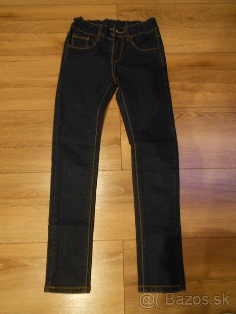 Predám dievčenské rifle, veľkosť 140, tmavo modrej farby, málo nosené, v páse sa dajú regulovať, nepoškodené.