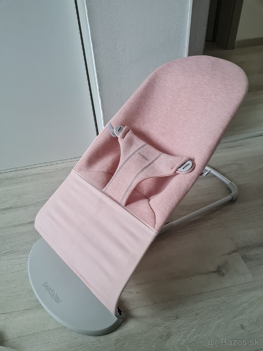 Predám zachovalé lehátko Lehátko Bouncer Bliss 3D Jersey - Light Pink, svetlá konštrukcia. Má veľmi jemnučke fľaky, ktoré takmer nevidno.