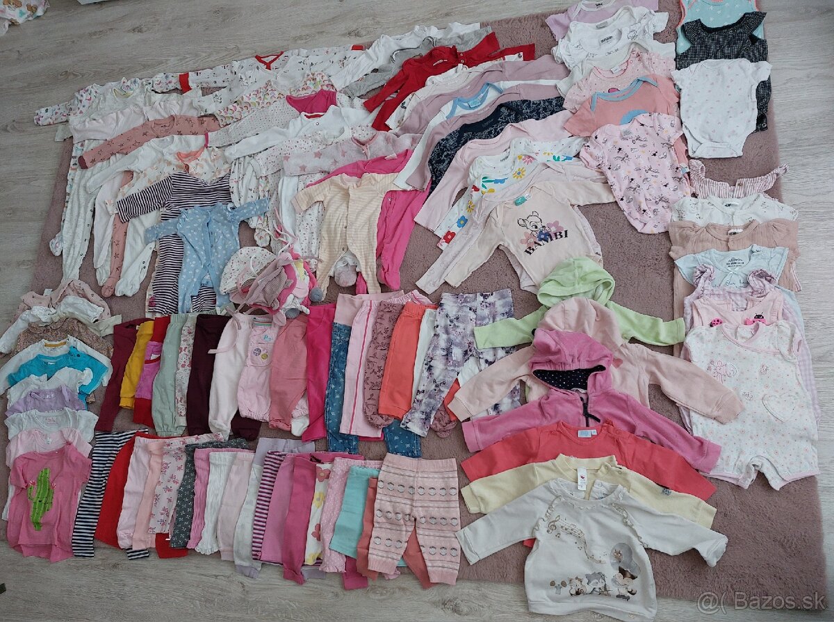 Dievčenské oblečenie veľkosti 56-86 (0-26mesiacov). Vo výbornom stave, niektoré úplne nové nepoužité.