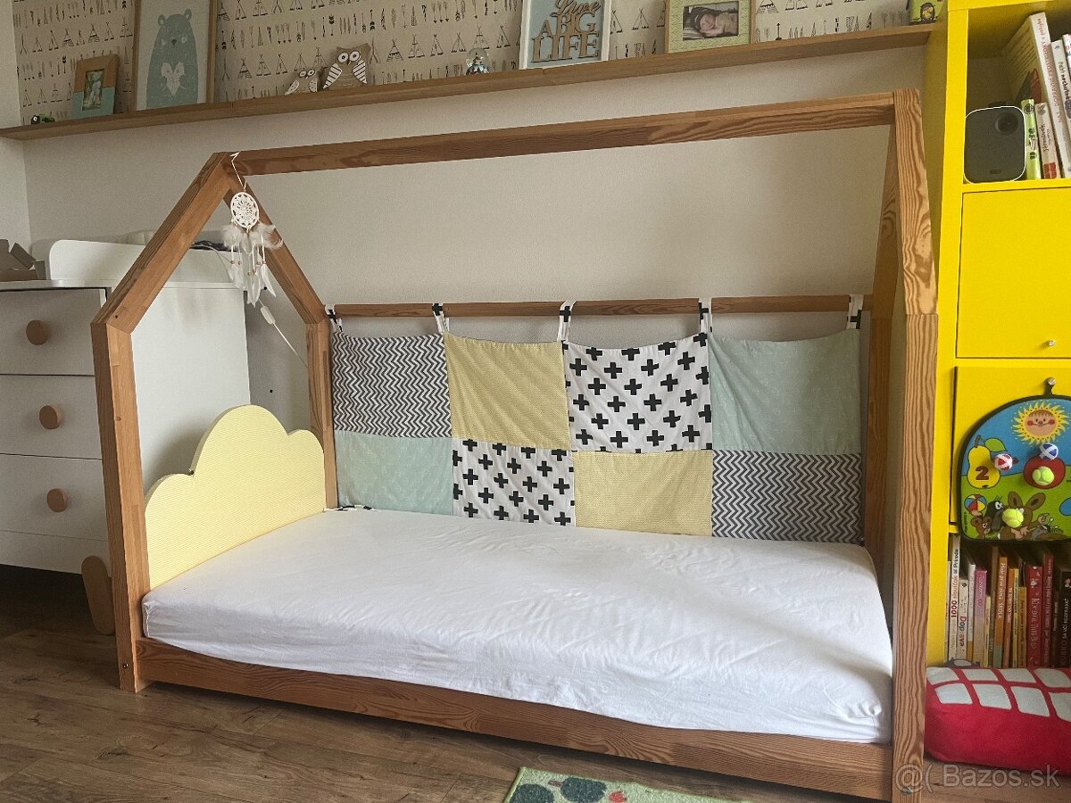 domčeková posteľ - [30.1. 2026]Predám krásnu detskú domčekovú posteľ v rozmere 190 × 100 cm, ideálnu pre menšie aj väčšie deti. Posteľ má prídavné nožičky, vďaka ktorým ju možno používať vo vyššej polohe, alebo ju postaviť aj bez nožičiek – nízko pri zemi, čo je ideálne pre najmenšie deti.