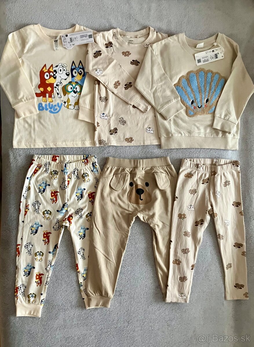Všetko veľ.92. Dvojdielna pyžamová súprava Bluey nová, súprava psík s aplikáciou vzadu iba opratá, mikina s aplikáciou nová a legíny so psíkom 2x oblečené bez poškodení. Predávam iba spolu. Cena je pevná 35€ bez dopravy. Poprosím písať iba v prípade vážneho záujmu. Ďakujem