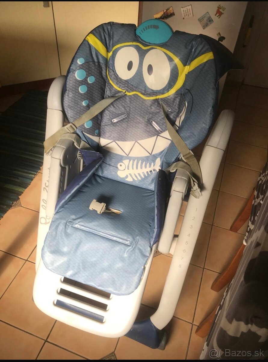 Praktická polohovateľna makka stolička s pultom čo sa dá oddeliť a tackou čo sa dá tak dobre vyčistiť, má tri polohy. Málo používaná. Po jednom dieťati. Vhodná od novorodenca.