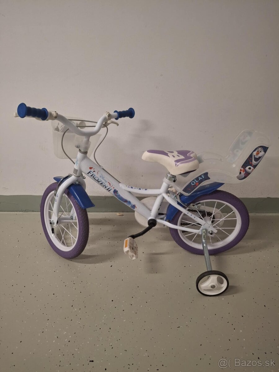 Predam Frozen bicykle velk.14, bez poskodeni, prasklin a skrabancov, garazovane, este do 03/2026 v zaruke. Nie su vyblednute. Oba bicykle maju pomocne kolesa, predny kosik a zadnu sedacku. Cena je uvedena za kus.