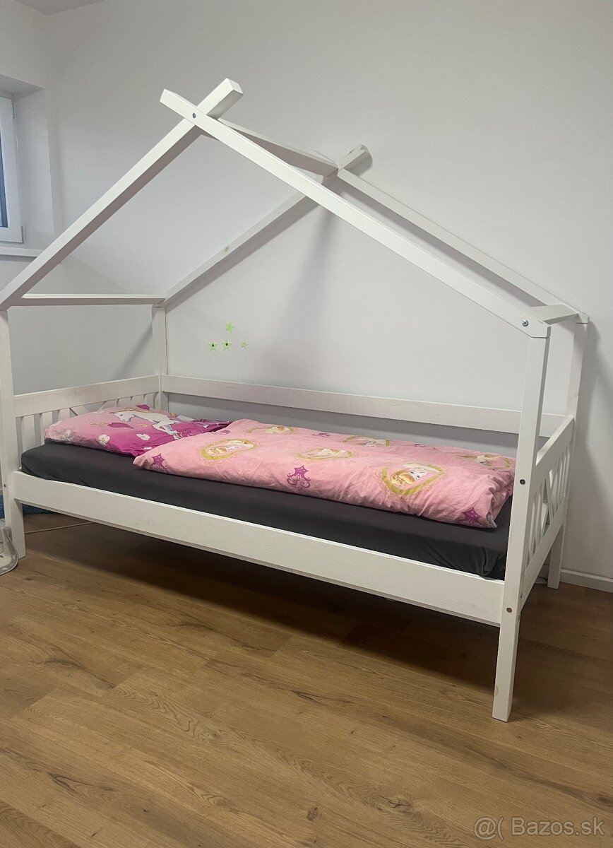 Domčeková posteľ - [25.1. 2026]Predám posteľ domček. Rozmer 80x160. Mierne opotrebovaná. Predávam aj s matracom.