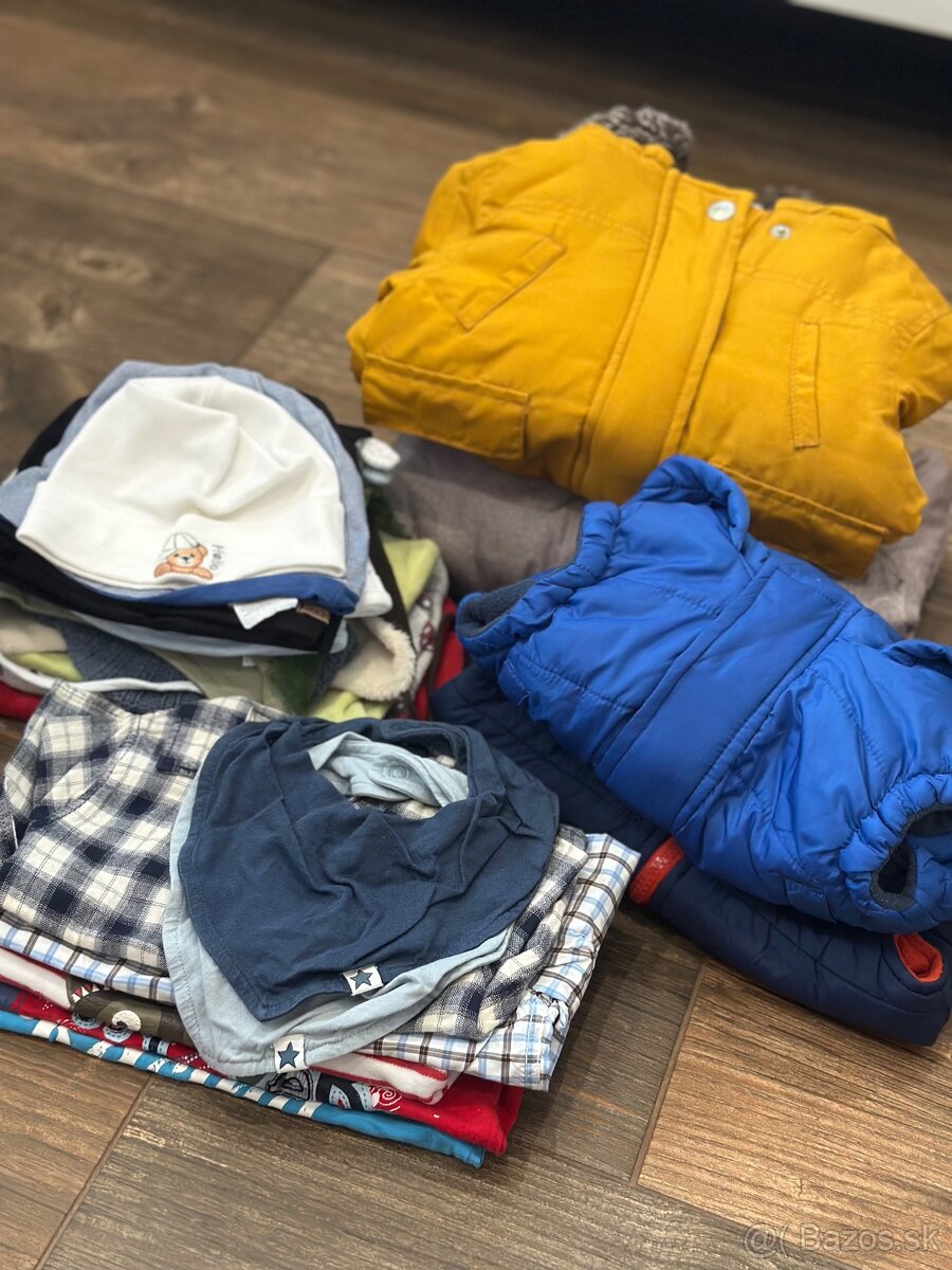 1 zimný overal, 2 zateplené vesty, 1 zimná bunda, 2 košele, 3 tričká dlhý rukáv, 2 šatky, 2 mikiny, 1 sveter, 3 letné čiapky, 4 prechodné čiapky, 2 zimné čiapky
