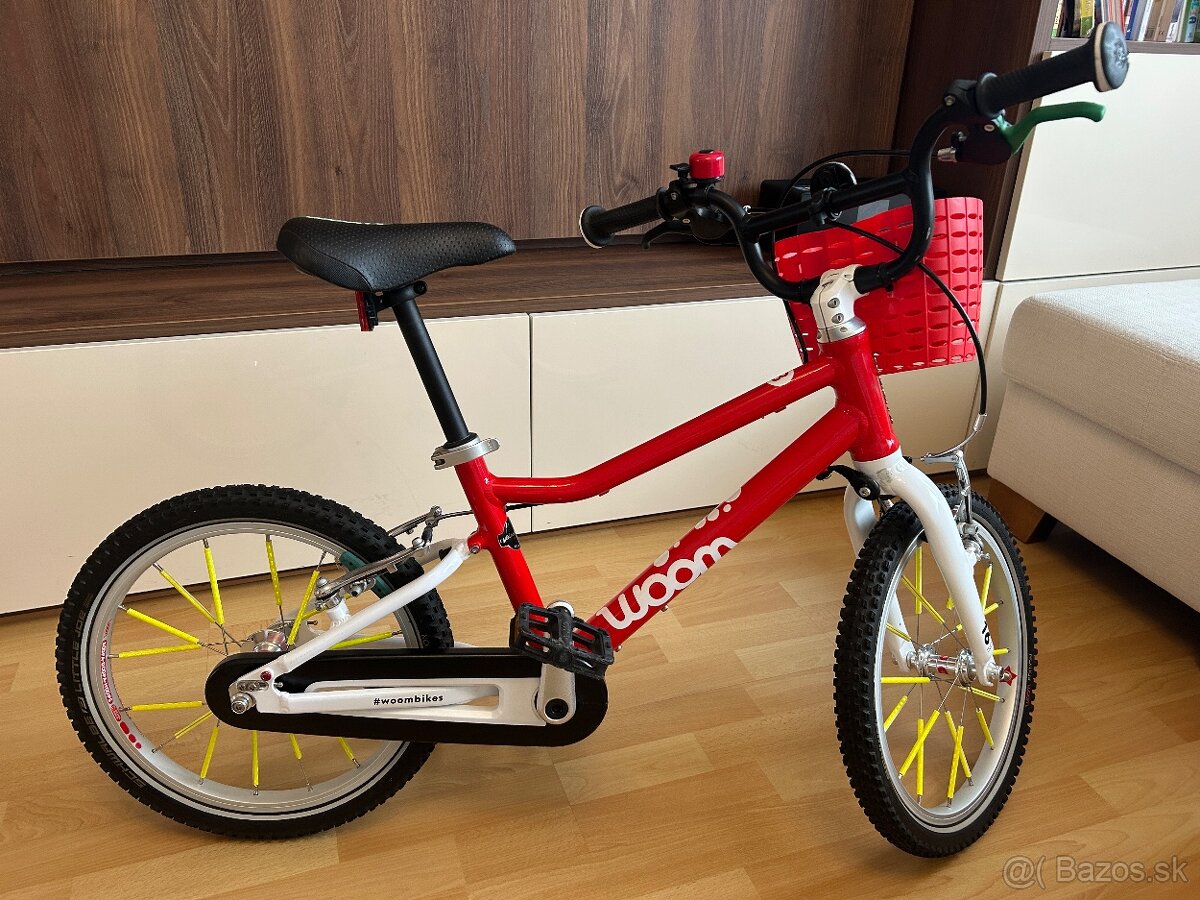 Predam woom 3 bicykel ako novy v perfektnom stave. S kosikom, odrazkami, odrazkami na spicoch, krytkami ventiliek vo farbe bicykla, zvoncekom a stojanom.