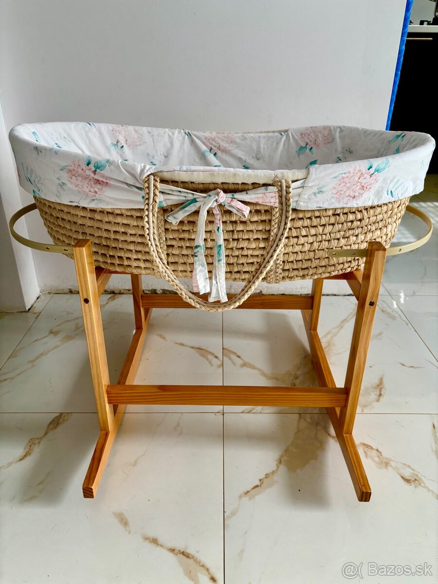 Predám krásnu kolísku pre bábätko na drevenej konštrukcii. Kolíska sa dá hojdať, no viete si ju zastabilizovať. Je bezpečná a vhodná pre novorodenca. Súčasťou je mäkké textilné vnútorné vystlanie s jemným kvetinovým vzorom. A matrac s plachtou. Kôš sa dá ľahko vybrať.