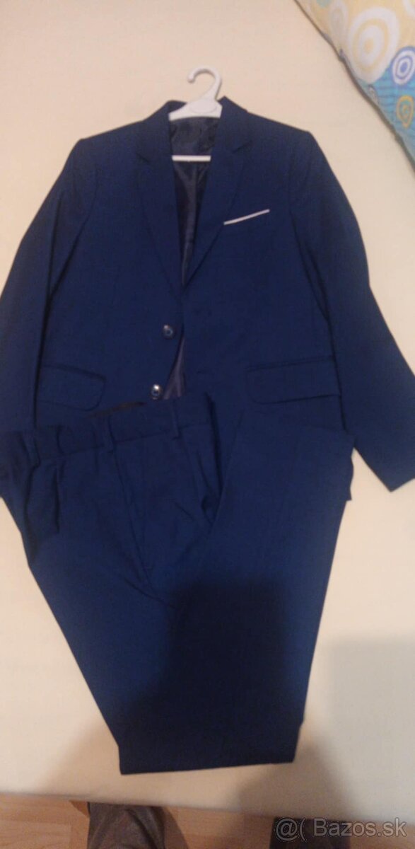 Predám chlapčenský oblek tmavomodrý oblečený 2x v top stave. Dĺžka nohavíc sa dá prispôsobiť. Veľkosť 146 xs. PC 80 eur
