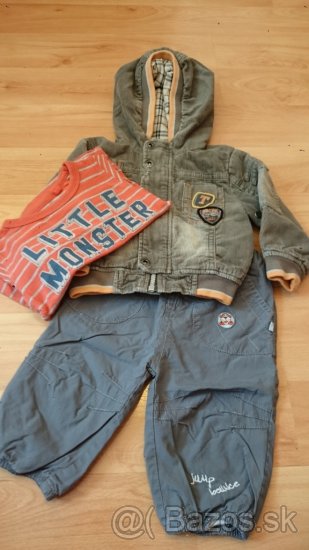 -sede gatuse s tigrikom, s bielou podsivkou, daju sa prisposobit v pase, su na gumicku, zn. OKAY a k tomu oranz. tricko s 3D potlacou LITTLE MONSTER,zn. NEXT,vel.3-6. mes. Mame vela veci aj v 74-ke velkosti, ak by bolo o nieco zaujem kludne napiste, aj na cene sa vieme dohodnut..