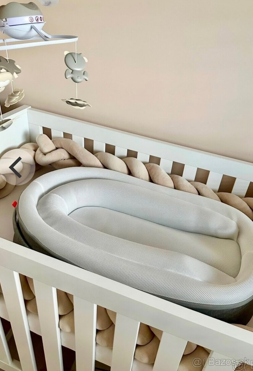 Hnízdo pro miminko na hraní a odpočinek doma i na cestách. Má vyjímatelnou polstrovanou vložku pro menší miminka a hrazdičku s plyšovou hračkou.