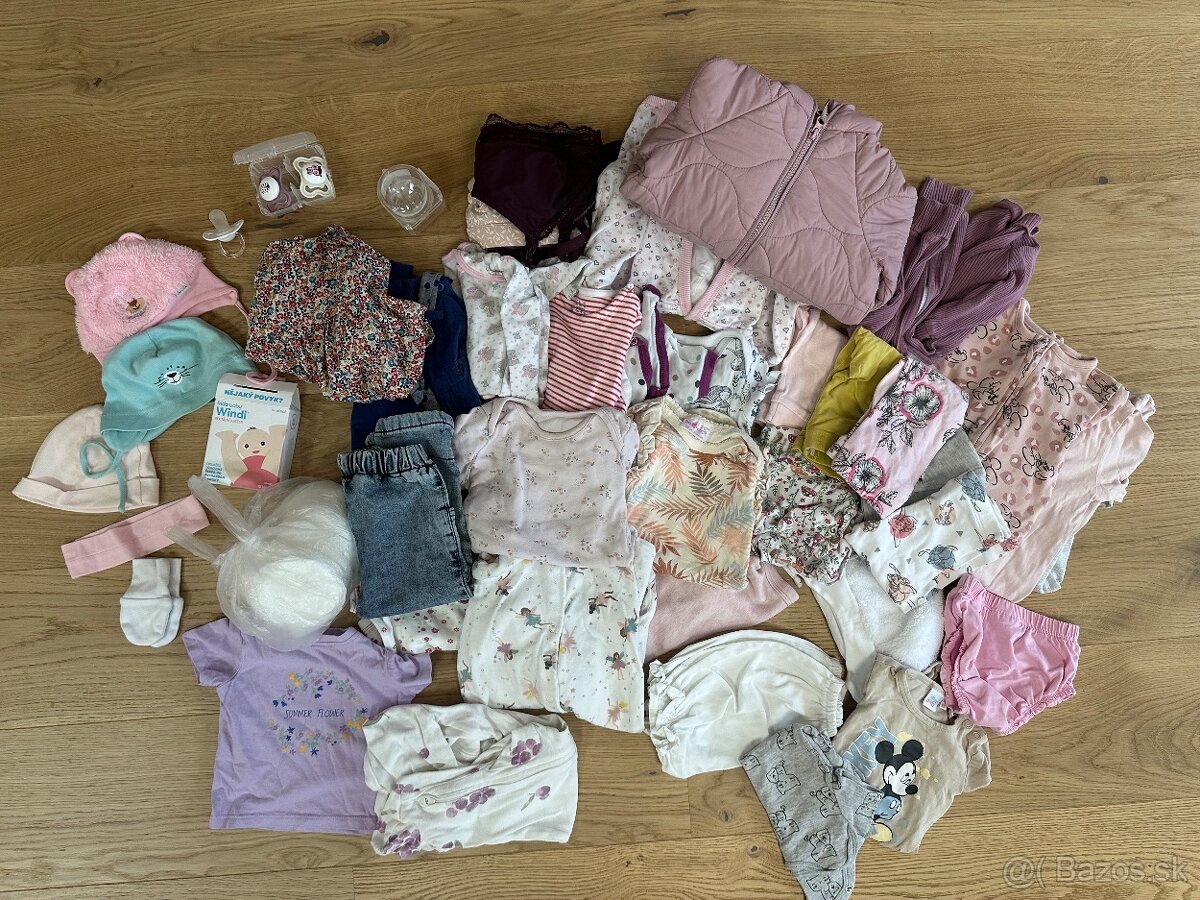 Predám množstvo dievčenského oblečenia vo veľkostiach od narodenia do cca 1 roka. Všetko vo veľmi dobrom stave, niektoré sú tam úplne nové. Nájdete overaly, body, bundičky, čiapky, rukavice, nohavice. Priložila som aj kojacie podprsenky nové vôbec nevyužité, plus prsné vložky, ortodontické cumlíky (mala nám úplne odmietla cumlík), cumeľ do fľaše a rektálne rúrky Windy. Pridala som aj detské plavky Plaváčik. Preferujem osobný odber.