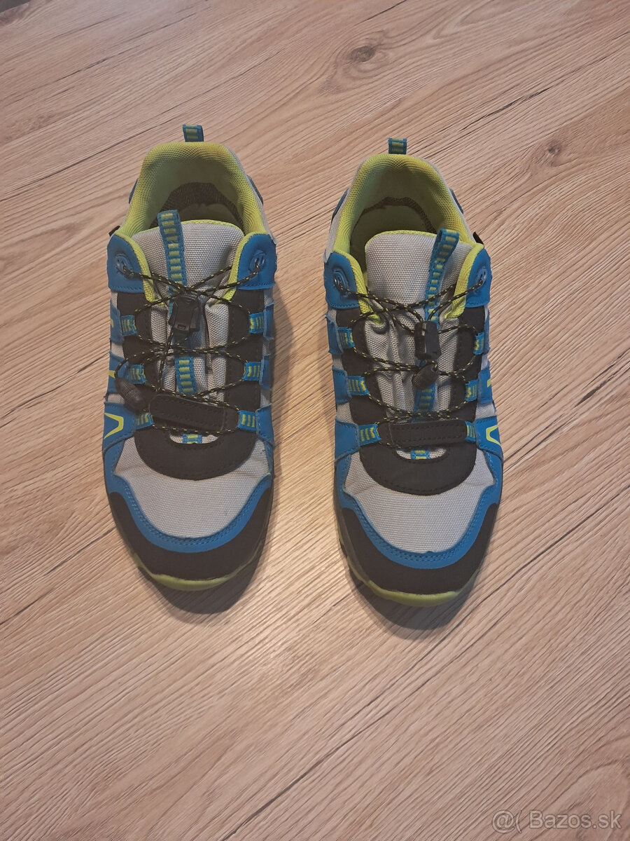 Predám detské turistické topánky zn. McKINLEY · Sonnerg II AQX Jr , veľkosť 39, VN 25,5cm. Multifunkčná detská nízka obuv McKinley Sonnberg II je určená nielen na turistiku. Zvršok so sieťovinovým materiálom zlepšuje priedušnosť a zaisťuje nízku hmotnosť topánok. Membrána AquaMax poskytuje ochranu pred nepriaznivým počasím. Ochrana špičky a päty poskytuje dlhú životnosť. Pútko na päte uľahčuje obúvanie a s rychlošnurovacím systémom je obúvanie a utiahnutie topánok hračka.