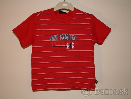 Predám detské pásikové tričko značky Champion , 100% bavlna, červenej farby s krátkymi rukávmi, vek 6-7 rokov sirka 2x37cm, dlzka 44cm