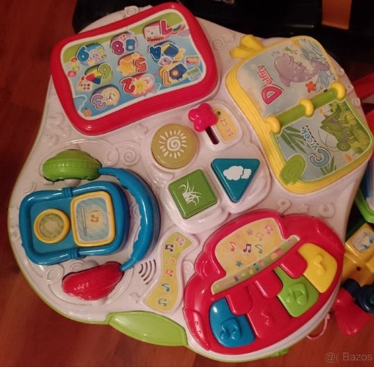 Predám interaktívny hrací stolček pre deti. Keďže nefungujú číslice 1,3,4,6,7,8,9 pridávam darček - detské knižky a sloníka.