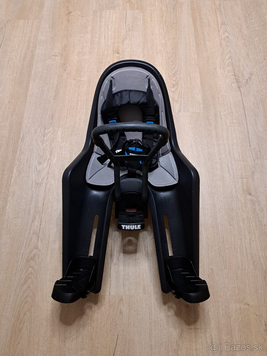 Predám detskú sedačku na bicykel Thule Ride Along Mini, vhodná od 9 mesiacov do 3 rokov, nosnosť 15kg, montuje sa pod predný predstavec, výškovo nastaviteľné opierky na nohy a 3-bodový bezpečnostný postroj. Cena 40€