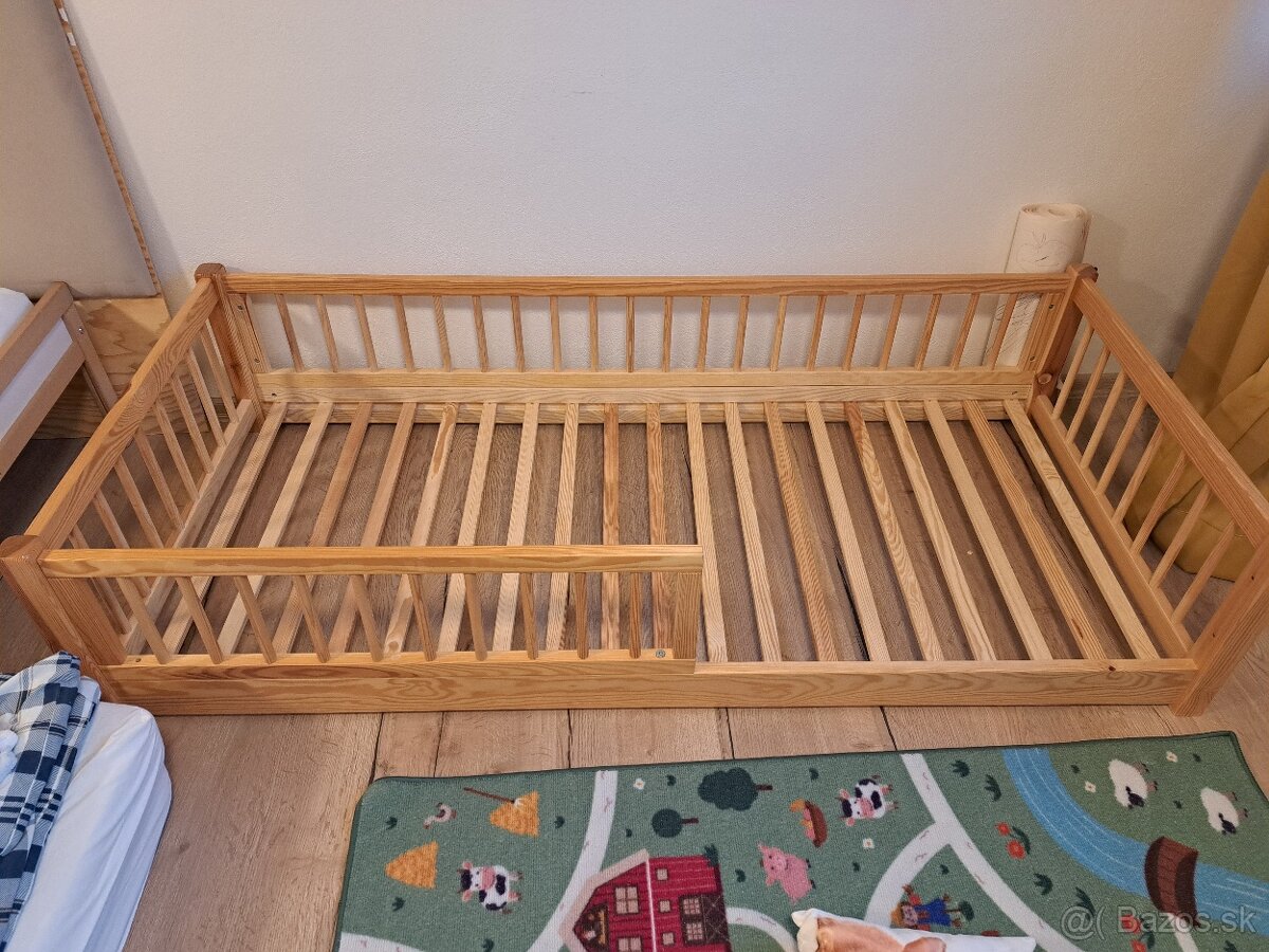 Montessori posteľ s matracom - masív - [6.2. 2026]K dispozícii detská posteľ typ montessori. Rozmery 160x80cm s rámom 164x84 cm. Celková výška 165 cm. Vyrobená z dreva- masív. Posteľ je vo výbornom stave, plne funkčná. V cene je aj matrac. Cena 145 eur. Možnosť dopravy.