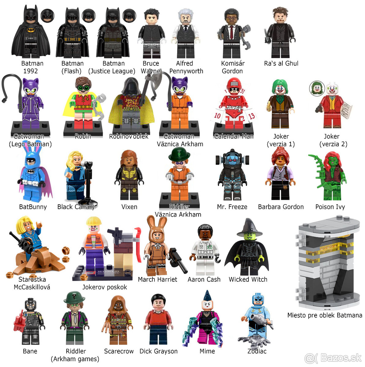 V ponuke nájdete LEGO figúrky hasičov, policajtov, sú tam tiež zlodeji, bežné LEGO city figúrky - chlapci aj dievčatá, Batman, Star Wars figúrky, Harry P ...